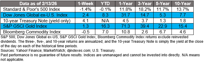 Last week, major U.S. stock indexes moved lower on concerns about AI, wrote Paul R. La Monica of Barron’s. Bond investors focused on economic data, which showed a stabilizing job market and lower inflation. That led to a rally in U.S. Treasuries with the two-year Treasury yield dropping to its lowest level since 2022, reported Rita Nazareth of Bloomberg.