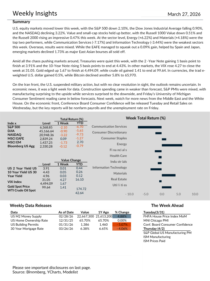 Markets declined last week as geopolitical tensions, shifting inflation expectations, and changes in the interest rate outlook continued to influence investor behavior.